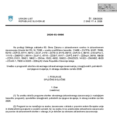 Vlada RS je sprejela Uredbo o spremembah in dopolnitvah Uredbe o programih storitev obveznega zdravstvenega ...