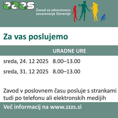 Obveščamo vas, da bo naš poslovni čas 24. in 31. decembra 2025 od 8.00 do 13.00. Enako velja za uradne ure in ...
